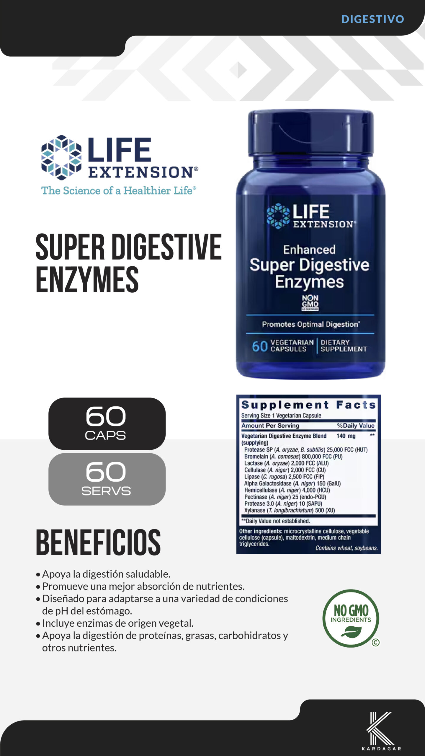 • 10-enzyme blend focuses on plant-based foods, plus protein, fat, and carbohydrates.
