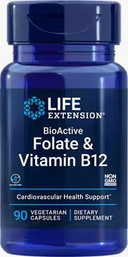 The Bioactive Folate and Vitamin B12 supplement supports the health of the heart, brain, digestive tract, and more, as its capsules contain clinically studied and biologically active forms of folate (as 5-methyltetrahydrofolate) and vitamin B12 (as methylcobalamin).