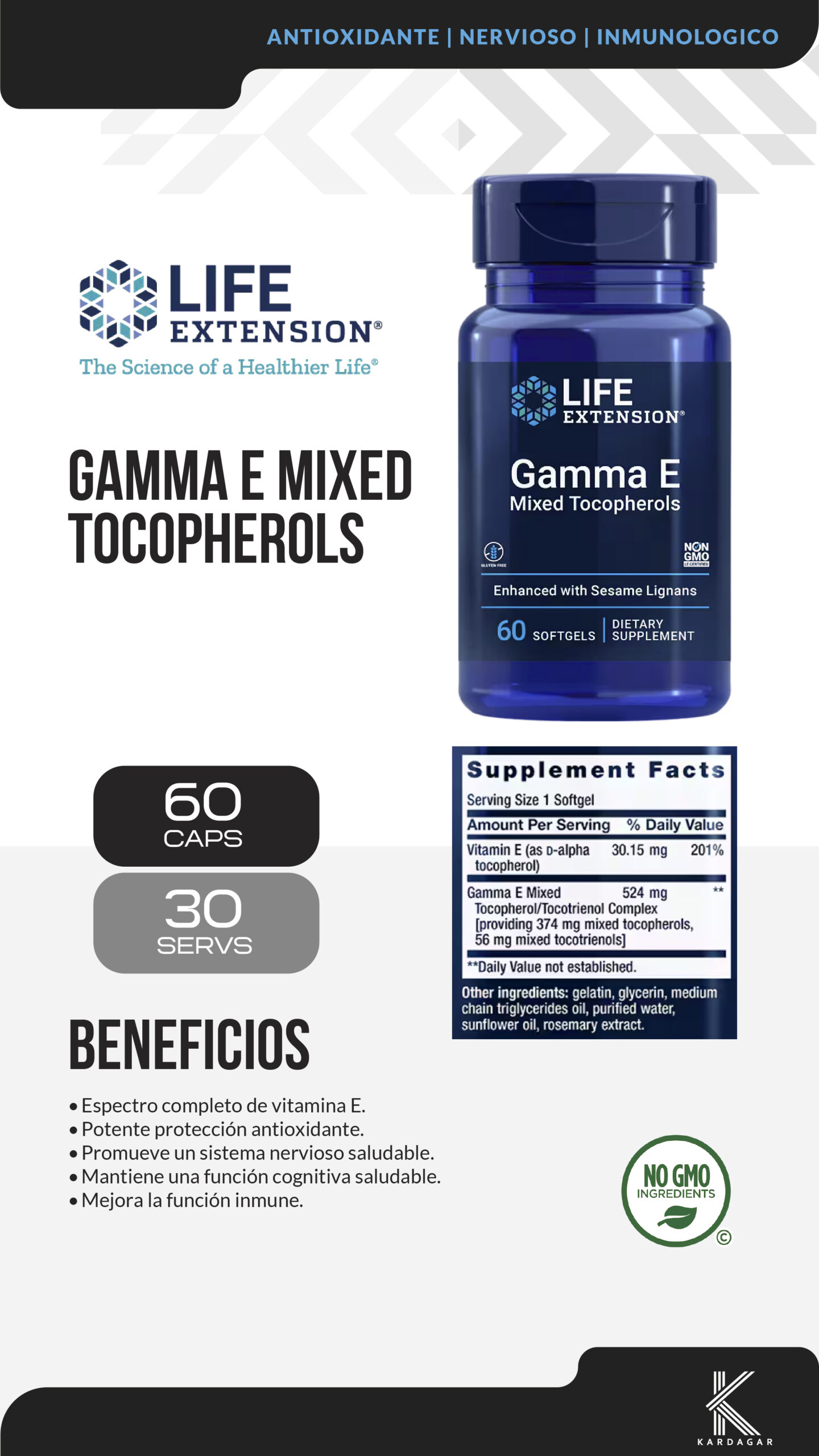 • Combines alpha & gamma tocopherols to help inhibit oxidative stress & Promote a healthy inflammatory response